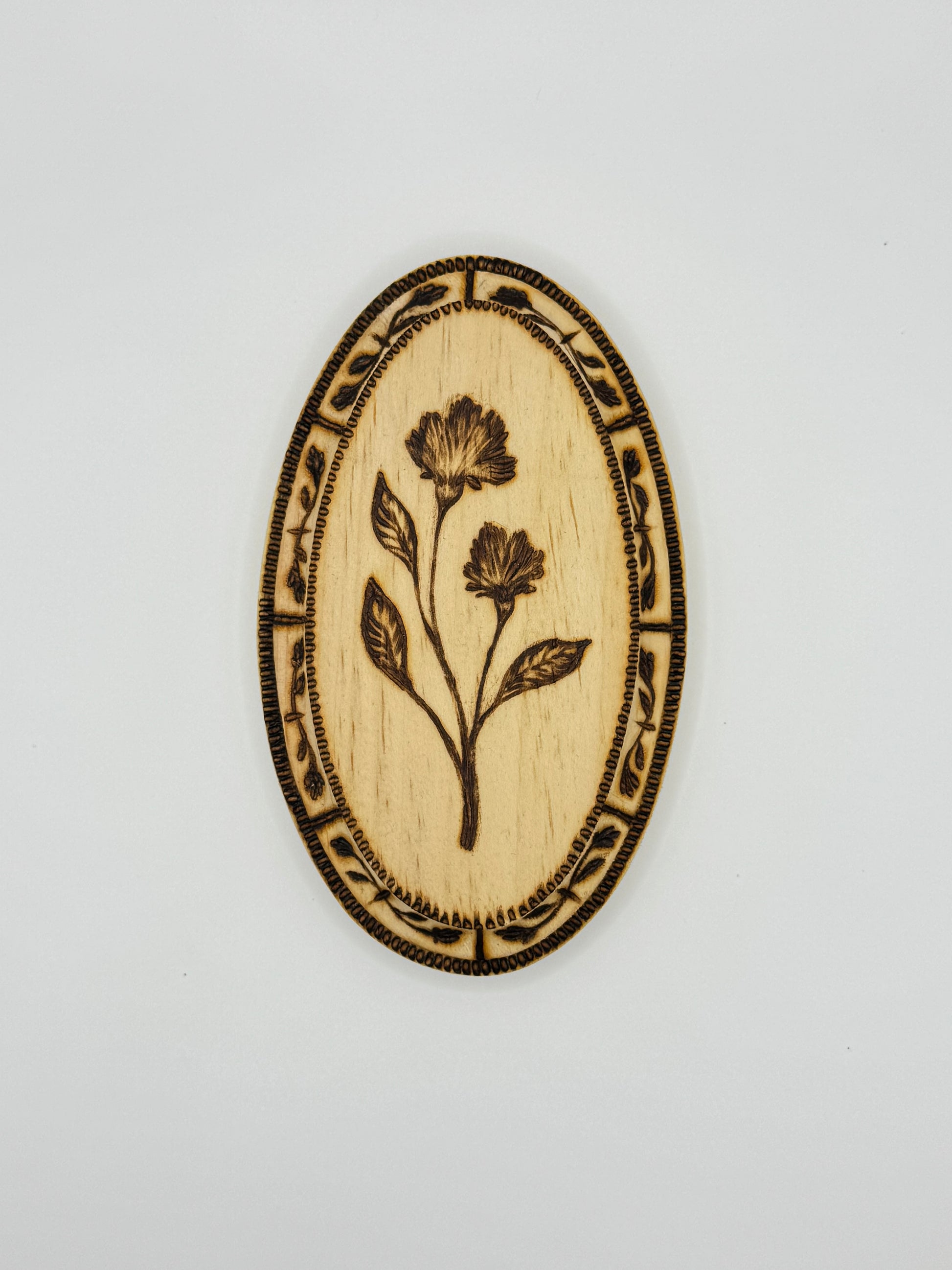 Hand-burned with care, this small wooden art piece captures a moment of quiet magic — a bloom, fern, or butterfly framed in ornate detail. Each design is one-of-a-kind, inspired by the wild beauty of nature and the warmth of the forest. A tiny metal hook on the back makes it ready to hang, perfect for adding a whisper of enchantment to your wall, altar, or favorite nook